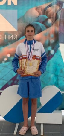 - Наш город представила спортсменка отделения плавания ДЮСШ №2 София Титаренко, - рассказал Артем Кулабин. - В возрастной группе среди девочек 2010-2011 годов рождения София дважды поднималась на первую ступень пьедестала на дистанциях 50 и 100 метров на спине. А ещё одну серебряную медаль заработала в заплыве на 50 метров баттерфляем.