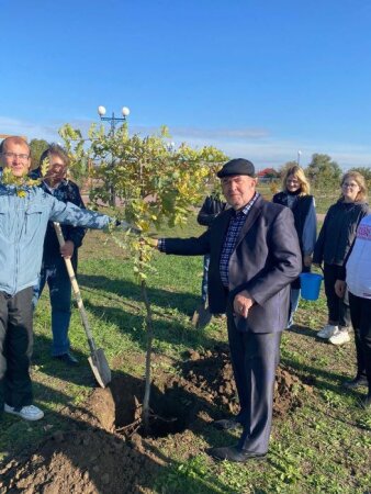 Саженцы в качестве подарка из Беларуси получил Почетный гражданин Батайска Юрий Авилов, который лично поучаствовал в посадке.