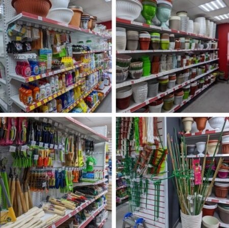 - полезные инструменты для работы в саду, семена и удобрения, грунты, средства защиты растений от вредителей, цветочные горшки, садовые фигурки для приусадебного участка;