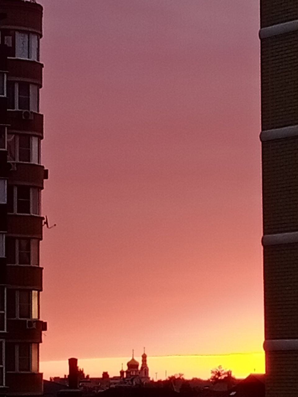 Согласно народным приметам, малиновый рассвет может означать, что в ближайшее время погода станет ясной и солнечной. Однако, по данным синоптиков, на город ближайшие выходные надвигается дождь.