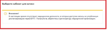 – В настоящее время отсутствуют медицинские должности, в которые доступна запись на углубленную диспансеризацию через ЕГПУ. Пожалуйста, обратитесь в регистратуру медицинской организации, - гласил ответ Госуслуг.