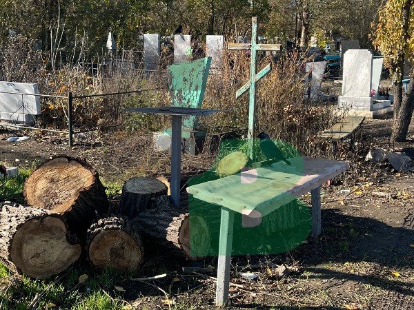 По словам очевидцев, остатки спиленного дерева валяются прямо на погребении.