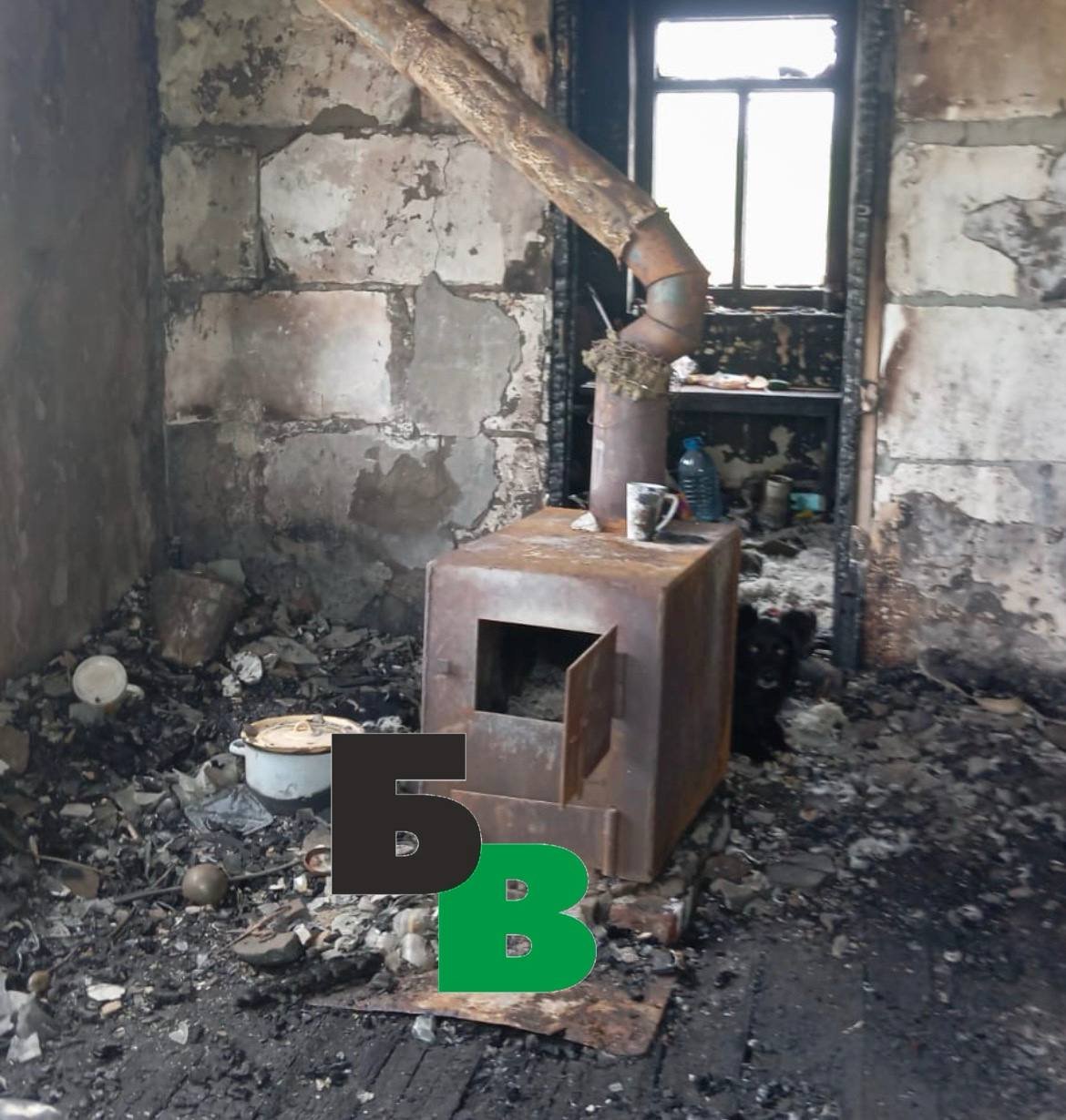 После пожара, Андрей Зайченко остался жить в обгоревшем доме, а его кроватью стал застеленный простыней обгоревший пол.