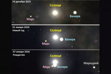 В январе 2026 года над Ростовской областью развернется редкое небесное шоу. Меркурий, Венера и Марс образуют парад планет вблизи Солнца. Пик этого уникального явления, которого не наблюдали с осени 2019 года, придется прямо на православное Рождество.