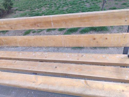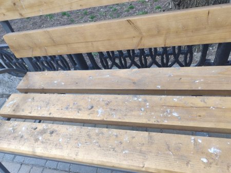 На многие скамейки просто невозможно присесть из-за большого количества птичьего помета. Жители подкармливают голубей, которые тут же гадят на лавочки, а оттирать это похоже некому. Кроме того, дерево очень быстро затерлось, так как впитывало в себя всю влагу.