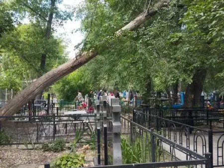 - Ветер вырвал ствол с корнем еще в марте и он повис на ветках другого дерева. В любой момент может упасть кому-нибудь на голову или разгромить памятники. Администрация города обещала в течение недели дерево убрать. Прошло уже столько времени, а мы все ждем, что оно упадет кому-то на голову. Какая халатность,- возмутилась Елена.