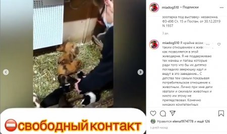 Внутри выставки она провела видеосъемку, на которой зафиксировано – маленькие посетители имеют свободный доступ к животным, могут их гладить, трогать, переносить. То есть происходит контакт людей с животными. Посетители берут их на руки и тискают – это тоже есть на видео.
