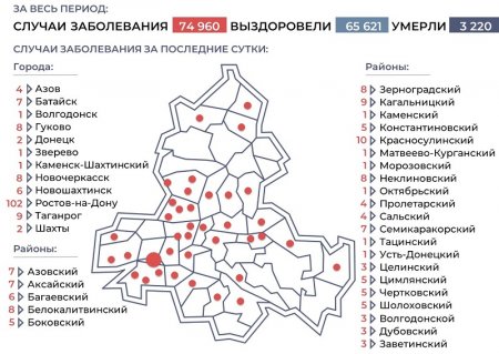 Батайск в этом списке расположился на пятой строчке (7 случаев за сутки) вместе с Азовским, Аксайским и Семикаракорским районами.