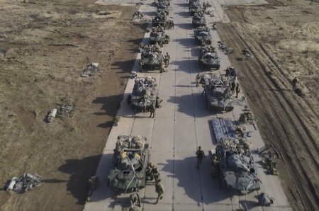 Как в свою очередь уточняет ТАСС, 23 апреля воинские подразделения "совершают марши на железнодорожные станции погрузки и аэродромы".