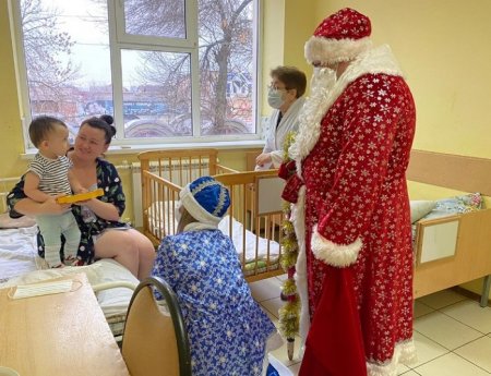 В свою очередь ЦГБ через соцсети рассказала, что подарки раздавали врачи в костюмах Деда Мороза и Снегурочки. Так в красном тулупе и с бородой к малышам в палаты заходил заместитель главврача Виктор Засорин, а роль его внучки исполнила врач акушер-гинеколог Наталья Хаустова.