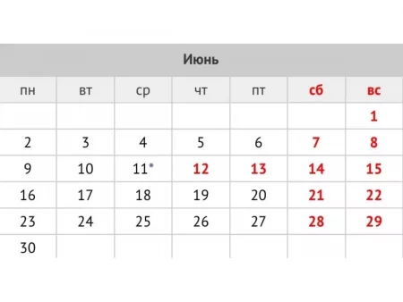 С 12 по 15 июня жители будут отдыхать. На 13 июня был перенесен выходной с 8 марта, выпавшего на субботу. 12 июня – праздничный день, а 14 и 15 – суббота и воскресенье.