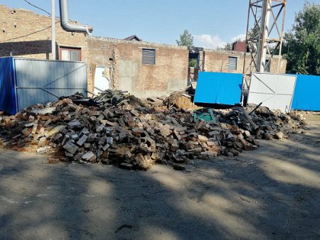 А между тем снос котельной стартовал в начале июля. Сначала помещение огородили железным забором, а позже его частично убрали и стали сбрасывать весь мусор на территорию переулка Ростовского, в районе дома №1.