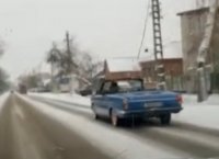 По заснеженным улицам Батайска проехался ретро-кабриолет. Чтобы прокатиться с ветерком по городу, водитель утеплился шапкой-ушанкой и развеселил прохожих (ВИДЕО). Ехал батайчанин в старой «Волге», у которой срезал крышу, превратив ее в кабриолет.