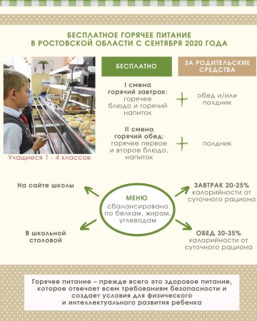 Примерное двухнедельное меню завтраков и обедов разработано питающей организацией совместно с Управлением образования и школами на основе примерного двухнедельного меню, разработанного Минобром Ростовской области. Список блюд, которые готовят детям, согласован с региональным Роспотребнадзором.