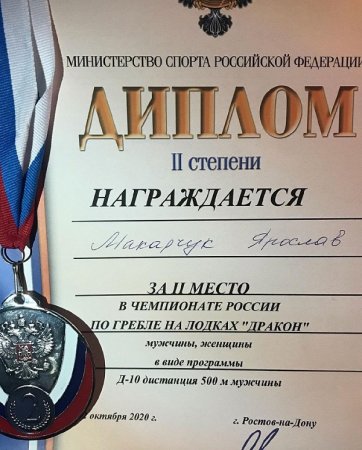 Ярослав Макарчук завоевал серебряную медаль по гребле на лодках "Дракон".
