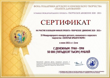 Так, номер батайчанки поразил судей. И Софья Чебуракова стала лауреатом I и II степени, оставив позади соперников. После окончания конкурса на электронную почту преподавателю девочки пришел диплом, благодарственное письмо и характеристика жюри.