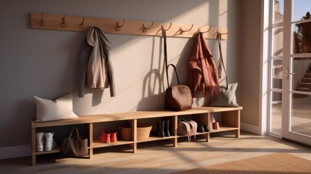 Вы можете разместить в маленькой прихожей пуф, скамью, табурет или складной стул, на которые будет удобно сесть, чтобы снять или надеть обувь, а также поставить сумку, портфель, пакет с покупками.
