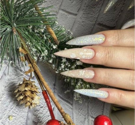 Блестящий маникюр или, так называемое, шампанское на ногтях – истинный символ Нового года. Сделать маникюр в духе этого праздничного напитка на самом деле проще, чем может показаться. Главное — достичь эффекта пузырьков шампанского. Для этого вам понадобятся лак с мелким глиттером, сияющая втирка золотистого цвета или лаки с металлическим эффектом. Важно правильно подобрать оттенок: золотистый, бежевый или светло-розовый.