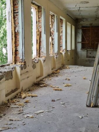 -Идет демонтаж окон, демонтирована напольная плитка. Выполняются работы по электрике. Все работы выполняются в соответствии с графиком, - сообщает управление образования.