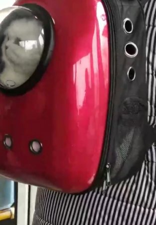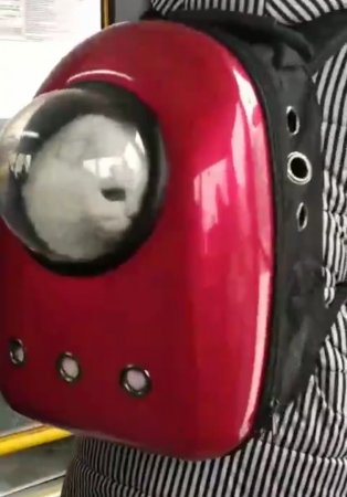 Животное путешествует вместе с хозяйкой в рюкзаке с иллюминатором. Смотреть на это зрелище без улыбки невозможно (ВИДЕО).