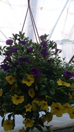 Кроме того, в теплицах Рубановых представлен огромный выбор подвесных кашпо с ампельной петунией и калибрахоа - около 100 видов и расцветок! Выглядят такие композиции очень эффектно. Большой цветущий шар украсит любой балкон или двор и станет отличным подарком любителям цветов. Стоит подвесное кашпо в теплицах семьи Рубановых от 250 рублей.