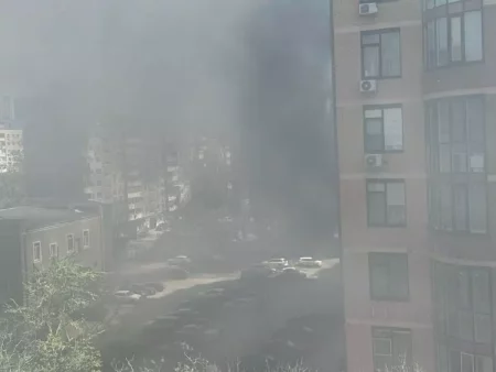 Густой дым окутал центр города. Местные жители жалуются на запах гари. Предварительно, никто не пострадал, но что стало причиной возгорания неизвестно. На месте 33 спасателя и 10 спецмашин.
