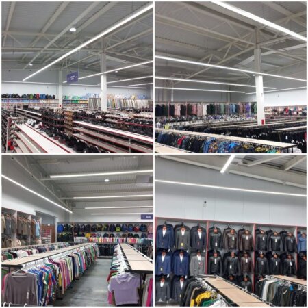 «Модно – не значит дорого!» - гласит слоган гипермаркета. И это легко проверить! Магазин удивит горожан большим ассортиментом одежды и обуви для всей семьи по низким ценам. Каждый клиент сможет совершить покупку, соответствующую своему бюджету. Ценовая палитра от 399 до 1899 рублей на одежду и обувь не только для взрослых, но и для детей: рубашки, брюки, футболки, спортивные костюмы, платья, юбки, джинсы и многое другое. В преддверии холодов в наличии появилась и теплая одежда – куртки, жилеты, пиджаки, а также сапоги, ботинки и кроссовки.