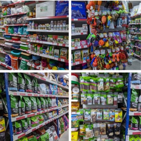 Приятным удивлением стало то, что магазин позаботился и о владельцах сельскохозяйственных животных и представил для продажи ассортимент товаров для них.
