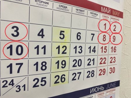 Так, 1 мая, Праздник весны и труда, приходится на субботу, поэтому выходной день переносится на понедельник - 3 мая. Затем 9 Мая, День Победы, выпадает на воскресенье. Соответственно выходным днем также считается следующий за ним понедельник - 10 число.