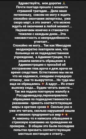 Она упоминает также, что Минздравом Ростовской области была проведена оценка качества оказания медпомощи, и были найдены нарушения: «Врачом не выполнены два критерия, что привело к критическому состоянию». Проверила больницу и прокуратура Батайска – нарушения также были найдены.