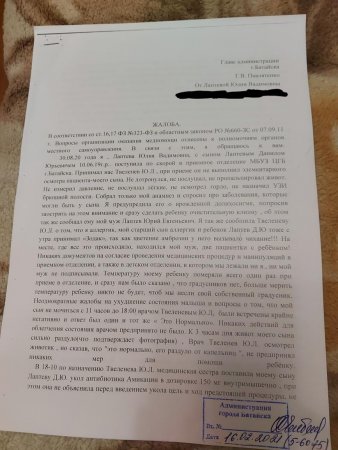 Юлия Лаптева отправила в мэрию петицию о снятии с должности не только руководства больницы, но и врача, который лечил ее ребенка. Хотя бы на время расследования.