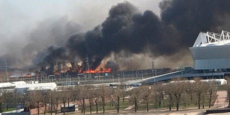 – Порывами ветра огонь распространился на большие расстояния в направлении стадиона «Ростов-Арена», площадь пожара превышает 0,2 Га.