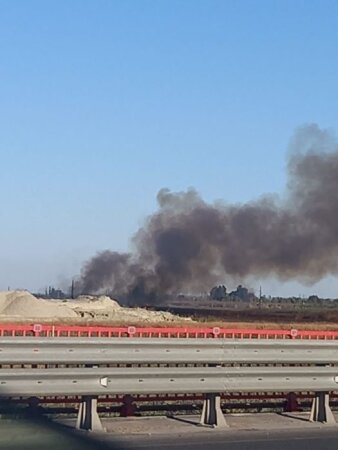 В эти минуты между Батайском и Ростовом, недалеко от Гребного канала горит камыш. Видео густого дыма прислали очевидцы.