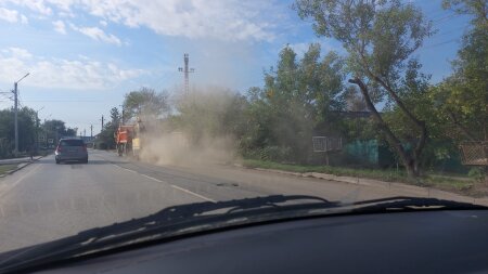 Жители жалуются, что спецмашина чистит обочины «насухую», поднимая пыль столбом.