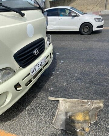 На фото видно, что при столкновении от автобуса отвалился лист пластика. Однако не ДТП стало поводом для обращения женщины в "Батайское время". У нее, как и у многих батайчан, пользующихся маршрутом №212, большие претензии к манере вождения водителей и состоянию автопарка.