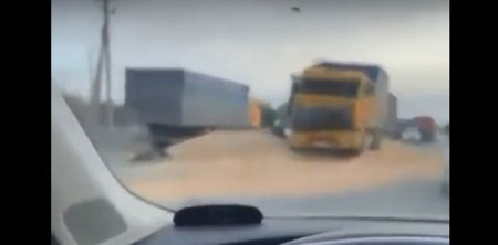 Превышение скорости одним из водителей привело к тому, что пшеница рассыпалась по трассе (ВИДЕО).