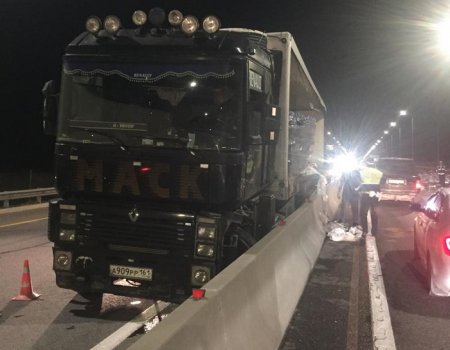 В 19.50 на этом участке трассы большегруз въехал в колесоотбойное ограждение. Как сообщил отдел пропаганды УГИБДД по Ростовской области, предварительной причиной столкновения стало лопнувшее у фуры колесо.