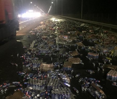 Грузом же оказались ящики и кеги с пивом. С учетом загруженности трассы, столкновения одного из ящиков и автомобиля избежать было невозможно. Однако водителям повезло: ехавший в это время по встречке «Форд» получил всего лишь механические повреждения, и никто из участников движения не пострадал.