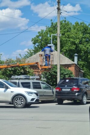 Дорожную камеру контроля за соблюдением ПДД установили в Батайске сегодня, 24 мая, на пересечении улиц Горького и Луначарского. Фото, на котором запечатлен момент установки устройства, прислали в редакцию батайчане, поинтересовавшись, что происходит.