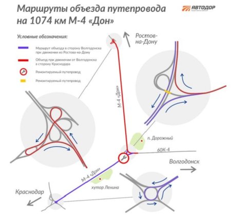 Водителям предлагают воспользоваться альтернативным маршрутом проезда. Так, если транспорт движется со стороны Волгодонска в направлении Краснодара, нужно развернуться на развязке на 1062-м км трассы М-4 «Дон». Те, кто едут со стороны Ростова в направлении Волгодонска, будут разворачиваться на развязке на 1084-м км под Батайском.