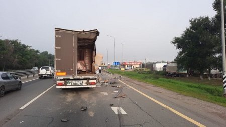 На Северном подъезде к Ростову фура протаранила грузовой автомобиль. Есть пострадавший. Кадры с места аварии обнародовали 28 июня в соцсетях.