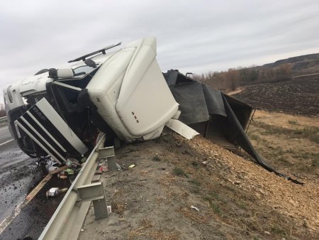 От удара грузовик опрокинулся, причем кабина попала на металлический отбойник, который по сути сработал как нож.