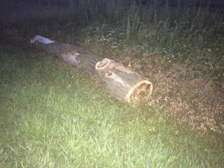Во время движения у большегруза лопнули цепи крепления, и тяжелые стволы полетели во встречные машины.
