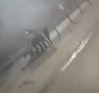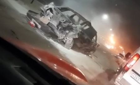 На видео просматривается стоящий на дороге сильно поврежденный автомобиль - машину буквально смяло со всех сторон. Кроме того, видно, что посередине трассы в районе разделительной полосы лежит раненый человек, и ему пытаются оказать помощь.