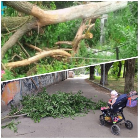 - Я гуляла со своей внучкой на улице Кирова за музеем, как вдруг прямо перед нами неожиданно свалилась эта ветка. Чудом не попала на ребенка! Подняла голову, а там зависли на проводах и другие ветки, уже сухие. Получается, в нашем парке гулять опасно для жизни, - рассказала 9 июля батайчанка Ирина Павловна Сибакова.