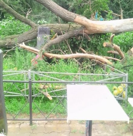 В Батайске продолжается "деревопад". Очередной случай произошел на красносадовском кладбище на улице Совхозной - огромное дерево рухнуло прямо на могилы. Об этом батайчане сообщили 8 июля и добавили: ЧП произошло еще две недели назад, а ствол до сих пор так и лежит на памятнике.