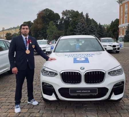 О подарке от властей батайчанин Нияз Ильясов сообщил через свои соцсети 18 сентября. Спортсмен разместил свое фото рядом с автомобилем «БМВ» белого цвета с маркировкой «Команда России» и табличкой «Нияз Ильясов» вместо номерного знака.
