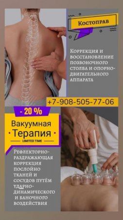Специализация: коррекция позвоночного столба и опорно-двигательной системы. Рефлекторно-раздражающая коррекция послойно тканей и сосудов путем ударно-динамического и баночного воздействия. Работа с эндокринной и кровеносной системой. На прием ведется предварительная запись.