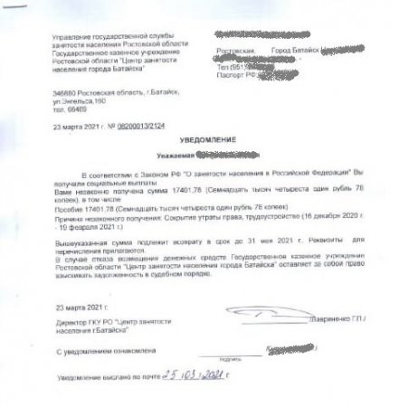 С автора странички из Батайска теперь требуют вернуть выплаченное ранее пособие по безработице. Даже несмотря на нулевой доход в интернете.