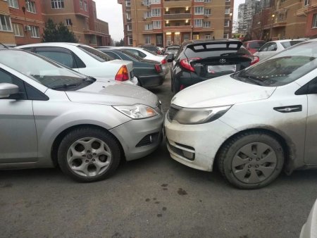 А между тем это не единственное, чем удивляют порой батайские автомобилисты. В сообществе микрорайона "Северная звезда" на днях появилось фото, из которого ясно - здесь живут истинные виртуозы парковки. Два автомобиля буквально "целуются" бамперами во дворе многоэтажек. Да и остальные машины припаркованы впритык.